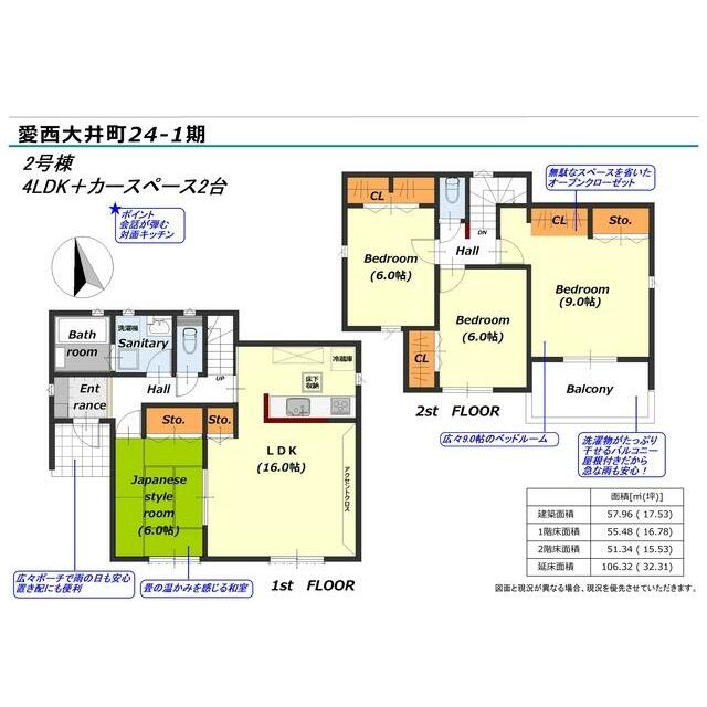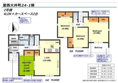 号棟番号:2号棟 46平米(うち、協定地部分約2.31平米)含む 土地面積の他にセットバック部分約2.96平米有り(売買対象面積168.33平米) 建物面積にインナーバルコニー部分約3.31平米含む ※詳細については担当営業店へお問合せください。また、現況と異なる場合は現況を優先させて頂きます。※浄化槽の場合は、浄化槽法に基づき別途検査手数料が発生します。 |