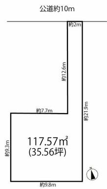| 土地面積 | 公簿 117.57㎡ | 坪数 | 35.56坪 | 坪単価 | 27.56万円 |